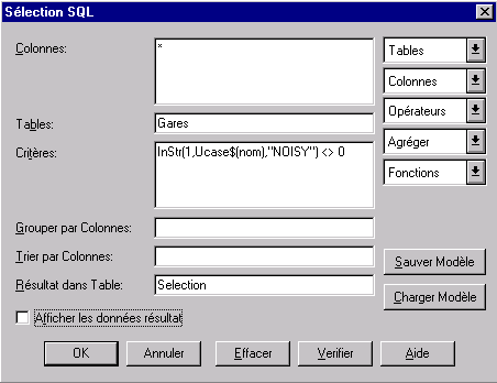 1) La boîte de dialogue "Sélection / Sélection SQL" *