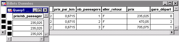 de la requête affichent une colonne "Prix par passager" (indiquant