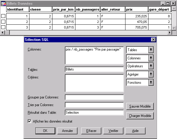 Cette table est appelée table source. Ainsi, par exemple, si vous effectuez une sélection sur la table Gares, celle-ci sera la table source.